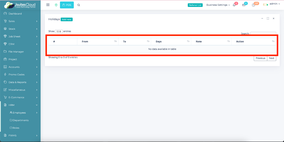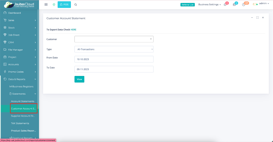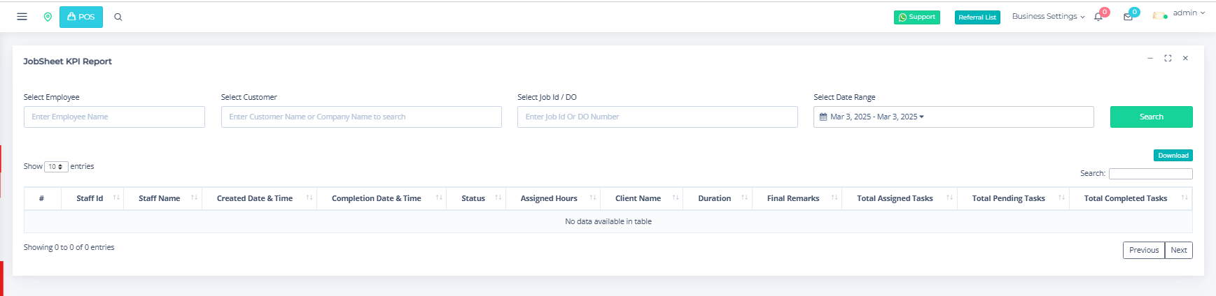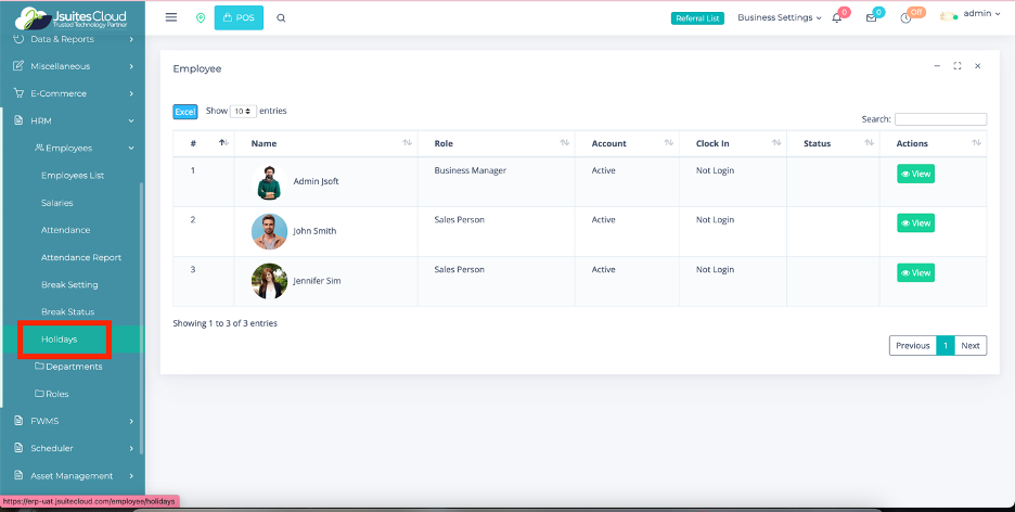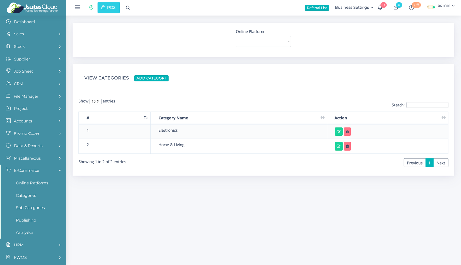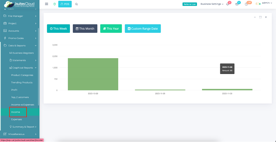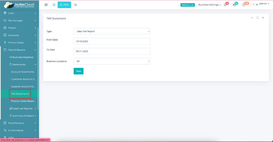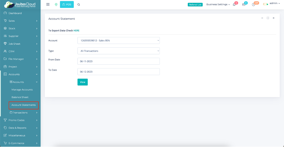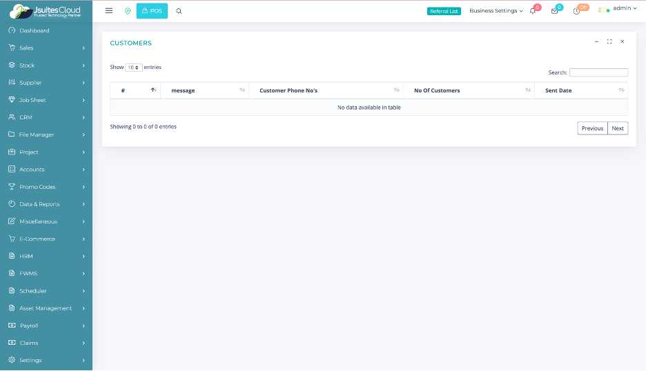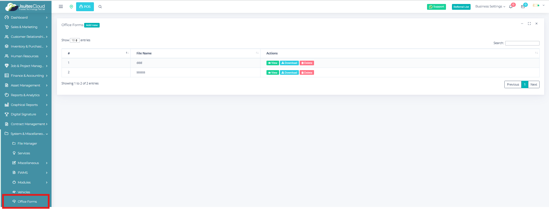 This section allows businesses to manage Point of Sale (POS) invoices, track customer transactions, and monitor payment statuses. Users can view a list of generated POS invoices with key details such as Invoice Number, Customer, Date, Amount, and Status.