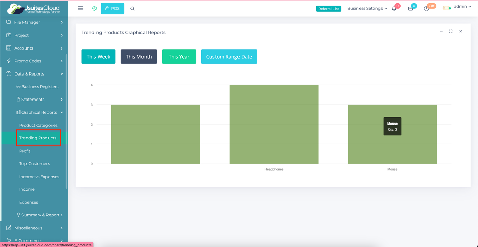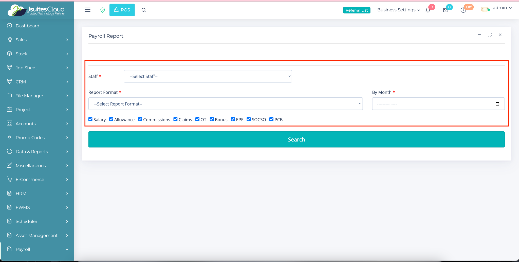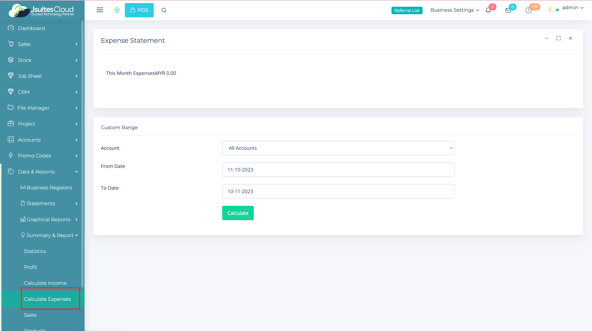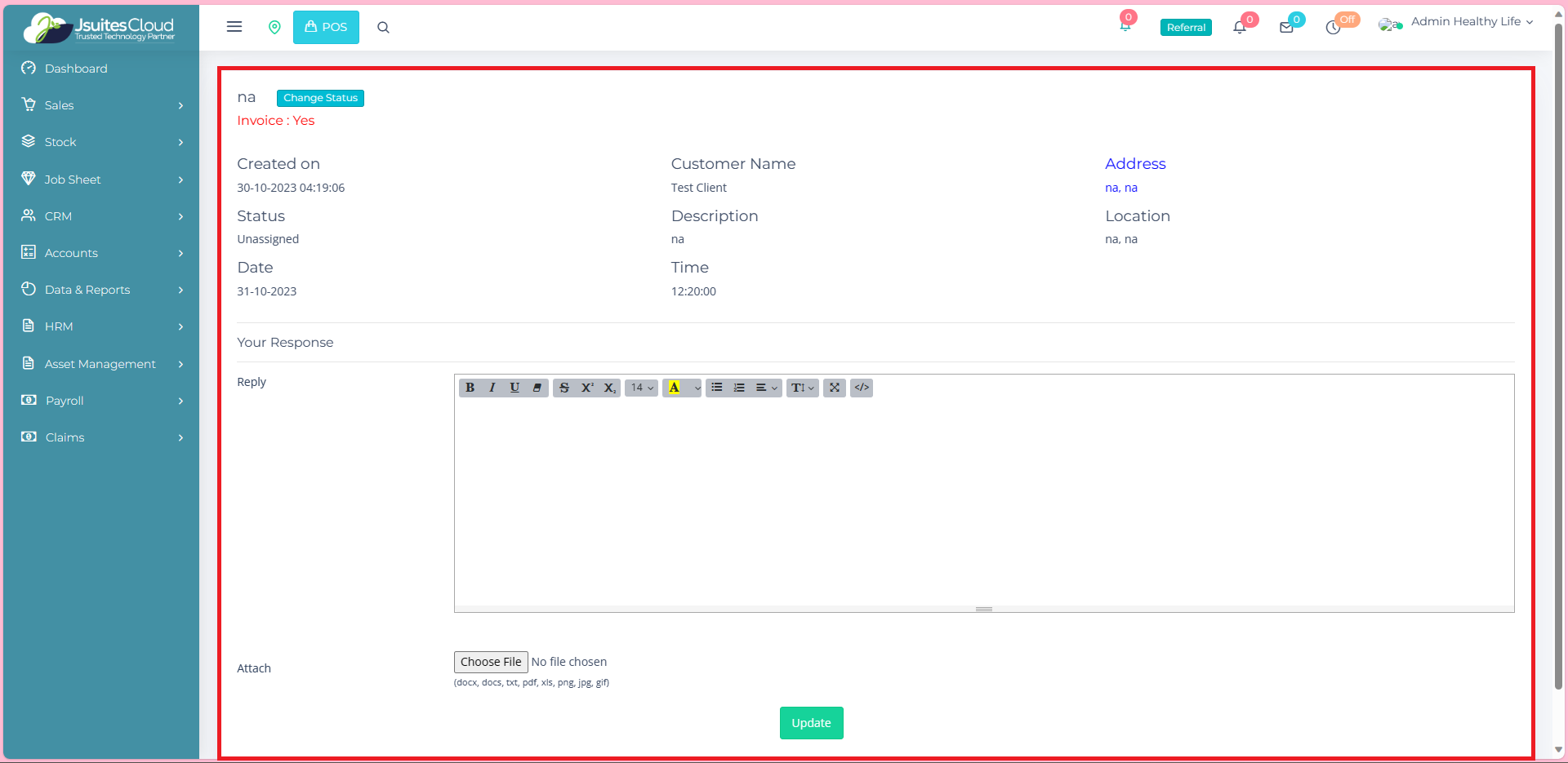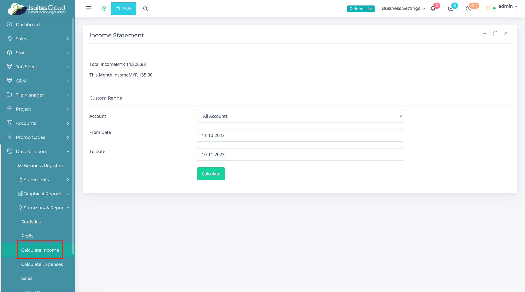 This section allows businesses to manage Point of Sale (POS) invoices, track customer transactions, and monitor payment statuses. Users can view a list of generated POS invoices with key details such as Invoice Number, Customer, Date, Amount, and Status.