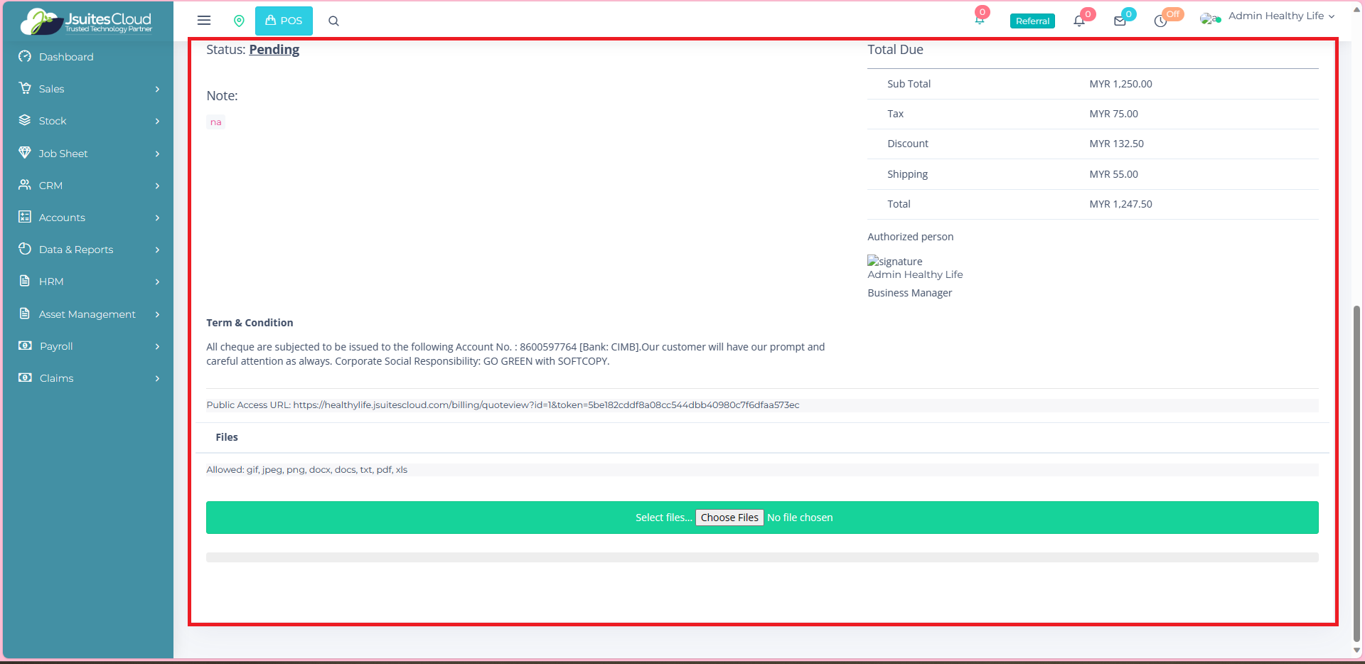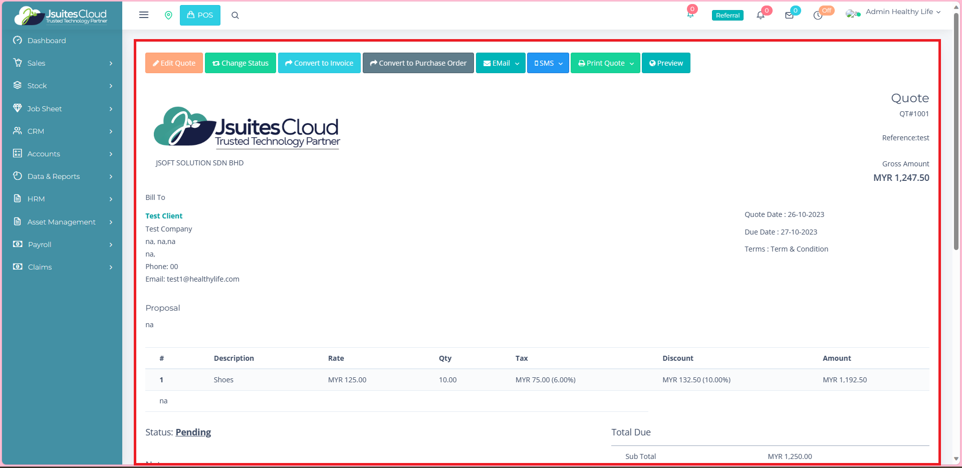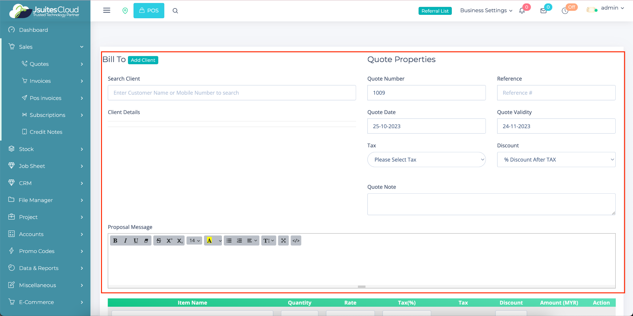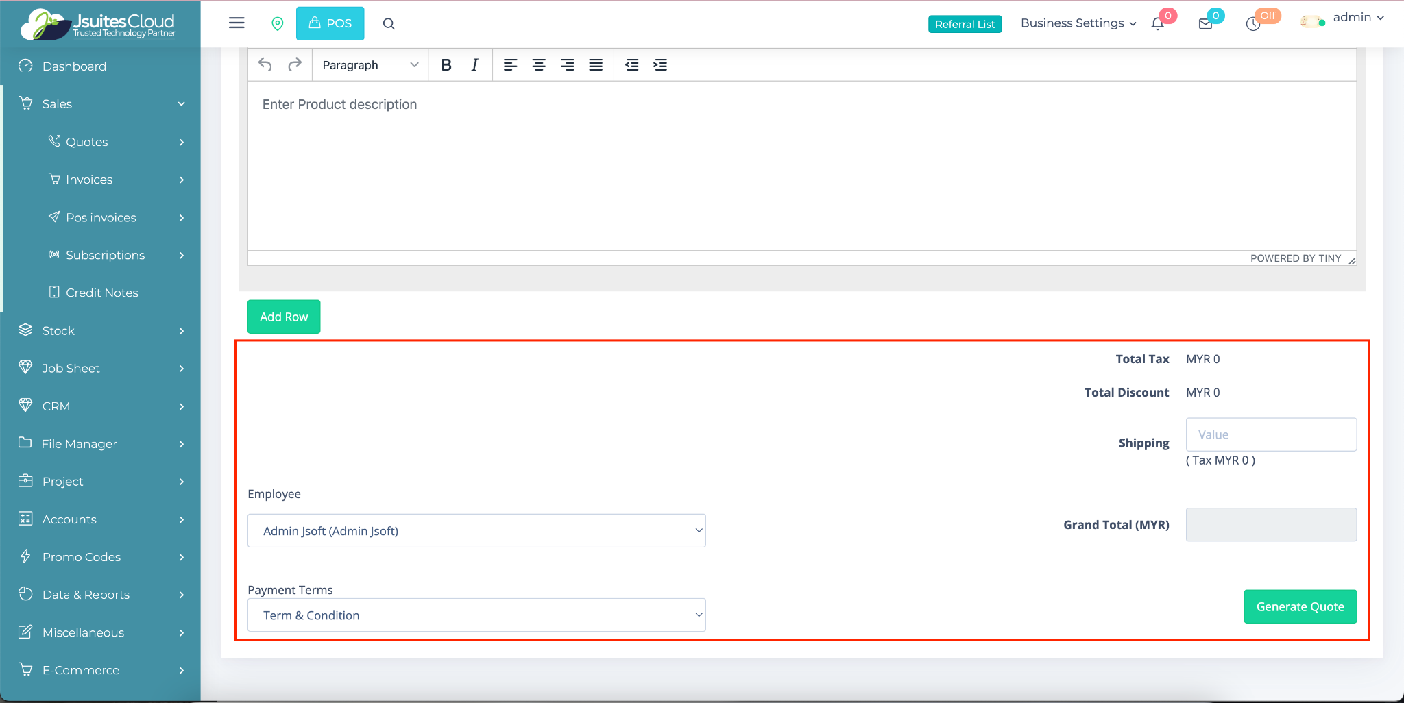 Once all necessary details are entered, click the "Generate Quote" button. This action finalises the creation of the invoice with the provided information.