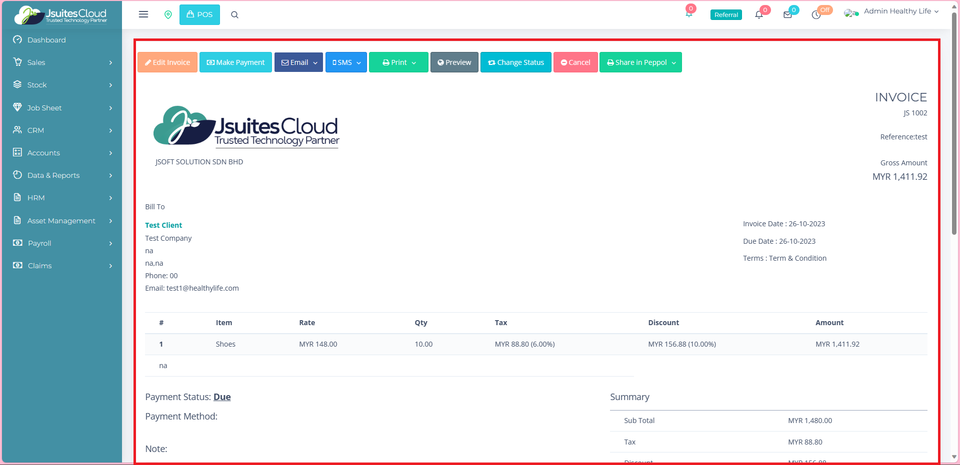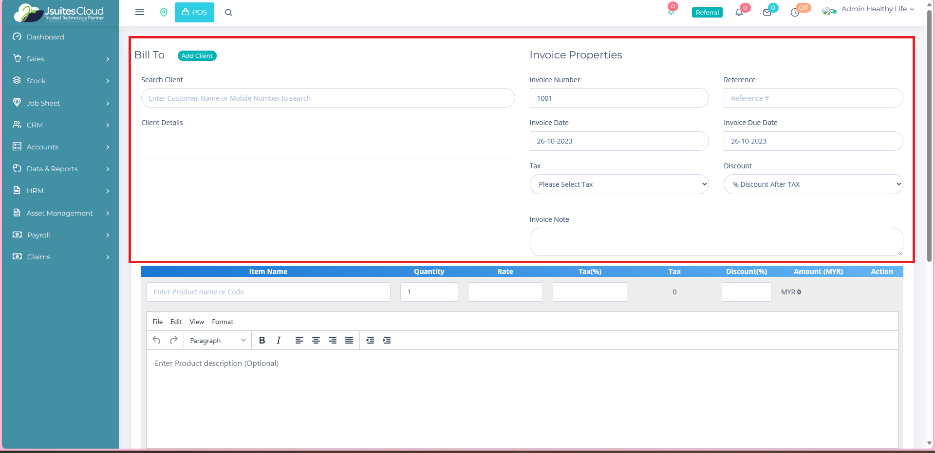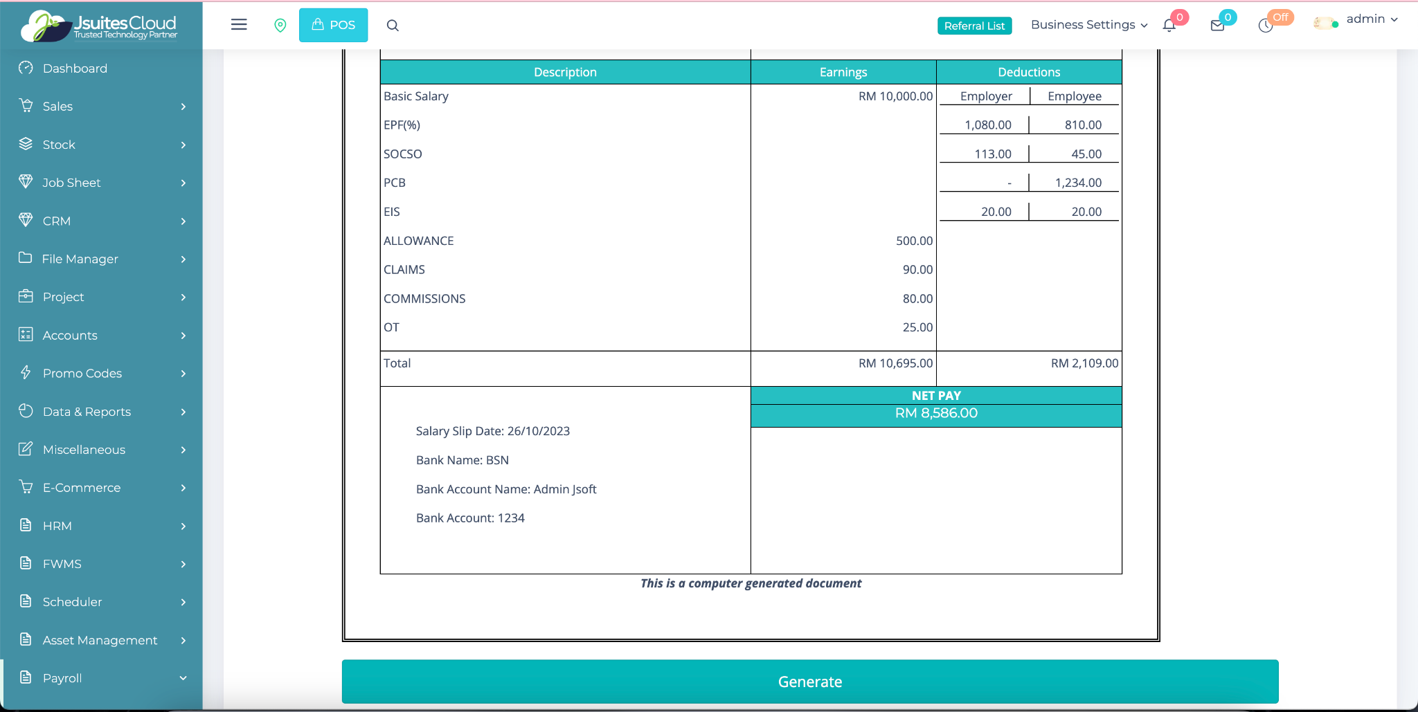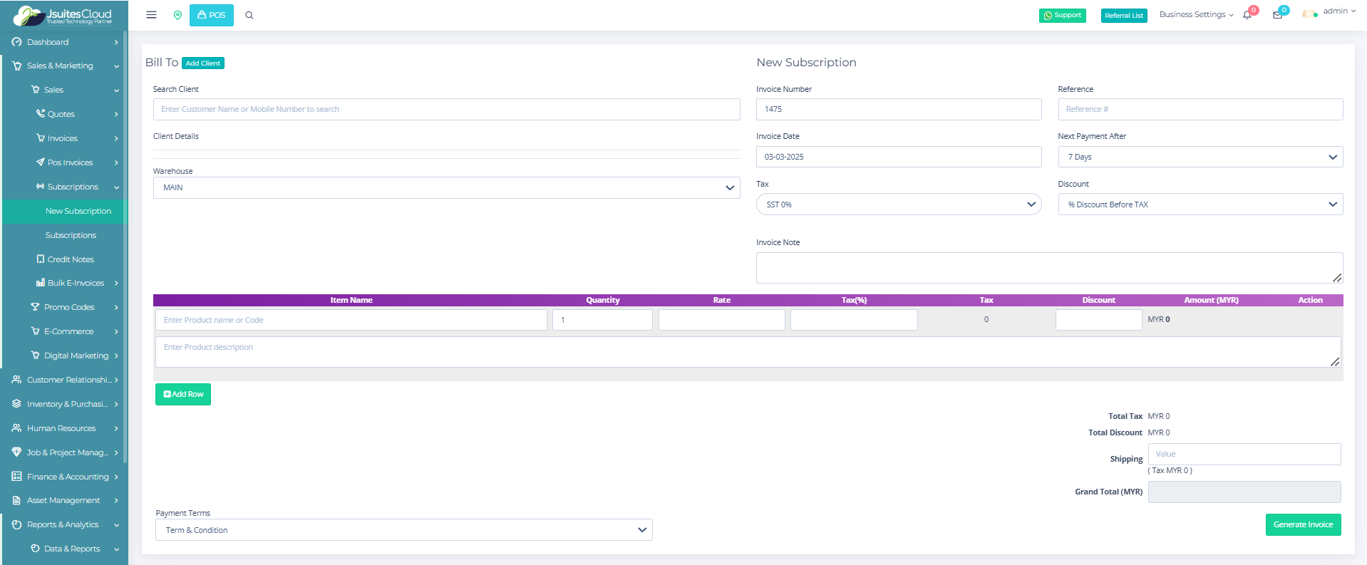 Once all necessary details are entered, click the "Generate Invoice" button. This action finalises the creation of the invoice with the provided information.