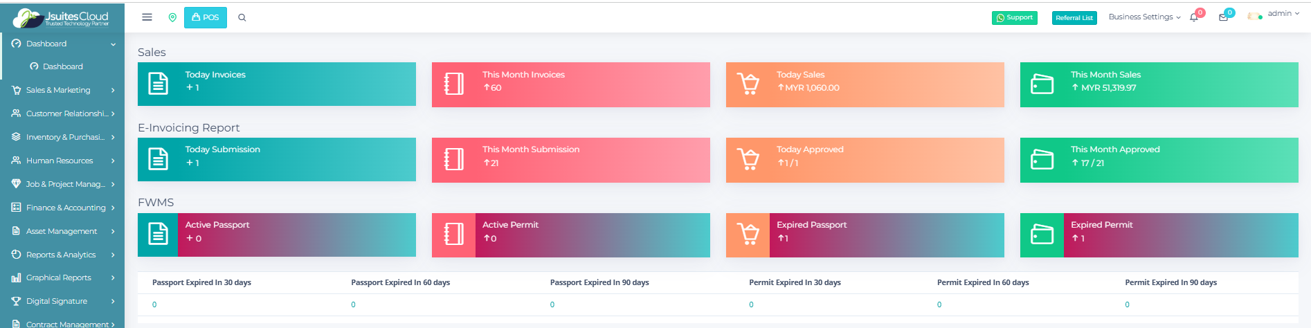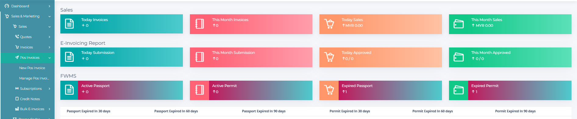 Welcome to the User Manual for your Dashboard. This Dashboard is designed to provide you with a comprehensive overview of important data and metrics related to your business operations. Whether you're tracking invoices, sales, permits, passports, or other essential information, this guide will help you understand how to make the most of the Dashboard's features.