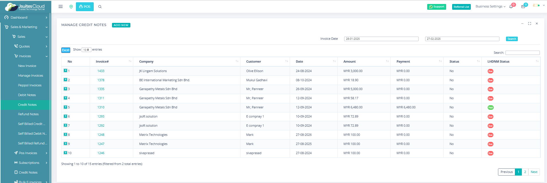 This section allows businesses to track and manage refunds, adjustments, or discounts issued to customers for previously billed invoices. Credit notes help maintain accurate financial records and customer satisfaction.