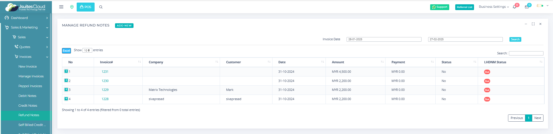 This section allows businesses to track and manage refunds issued to customers for overpayments, returned products, or service cancellations. Refund notes help maintain accurate financial records and ensure transparency in transactions.
