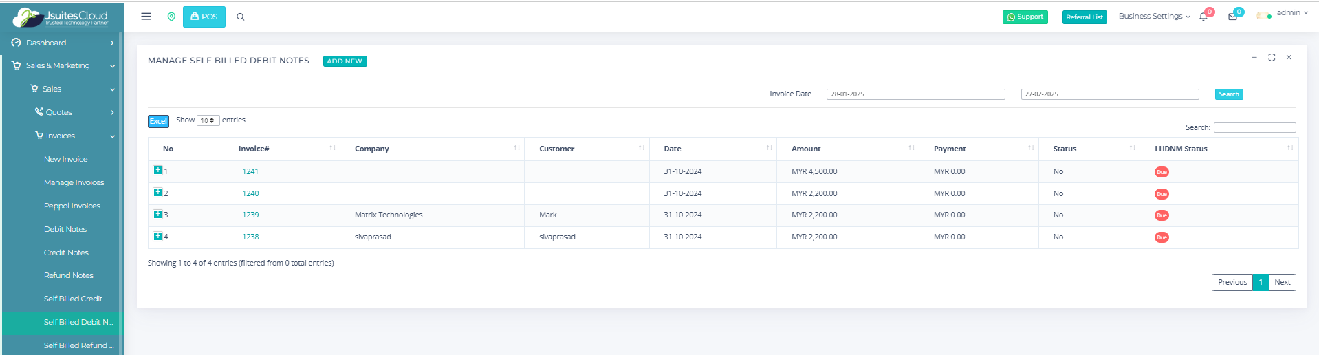 This section allows businesses to track and manage additional charges, corrections, or penalties applied to previous invoices. Debit invoices help adjust financial records while ensuring accurate transaction tracking.