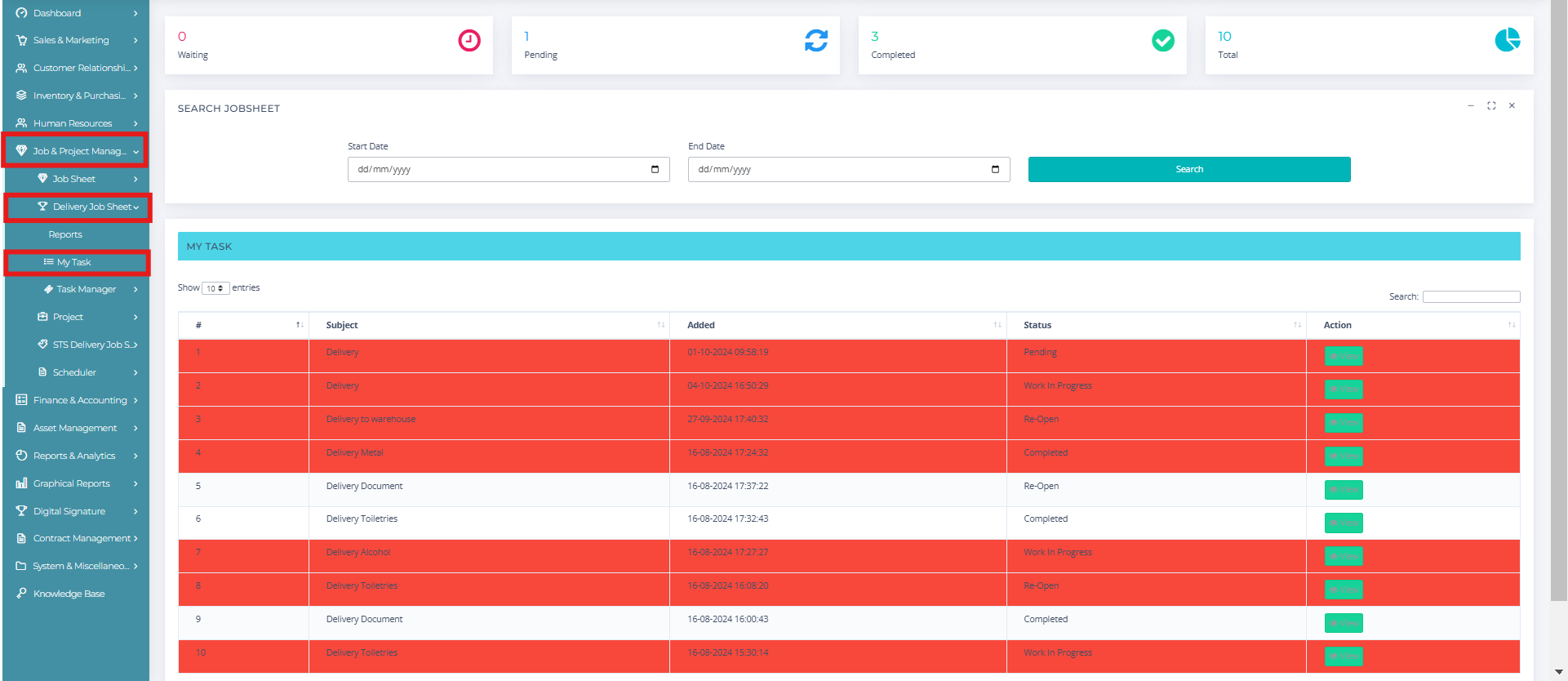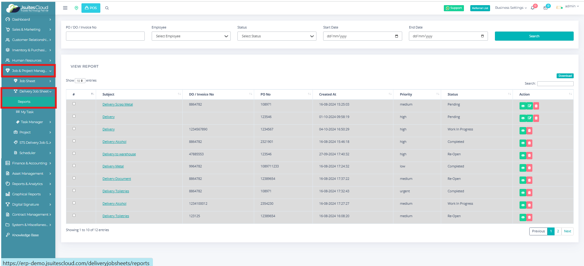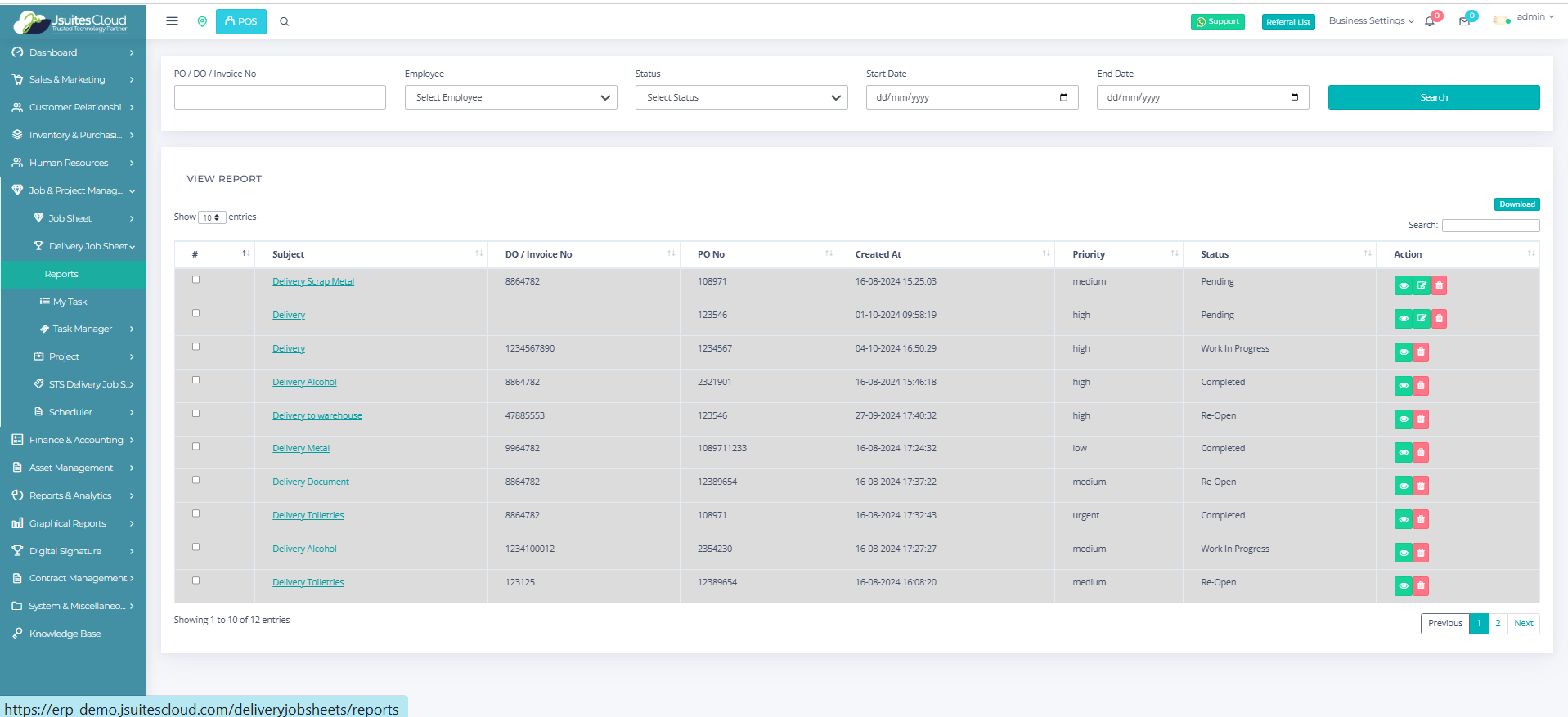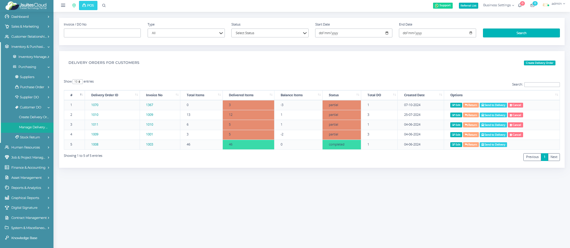 The **Manage Delivery Order** module provides a detailed list of all created delivery orders. Users can **edit, return, send to delivery, or cancel** delivery orders.