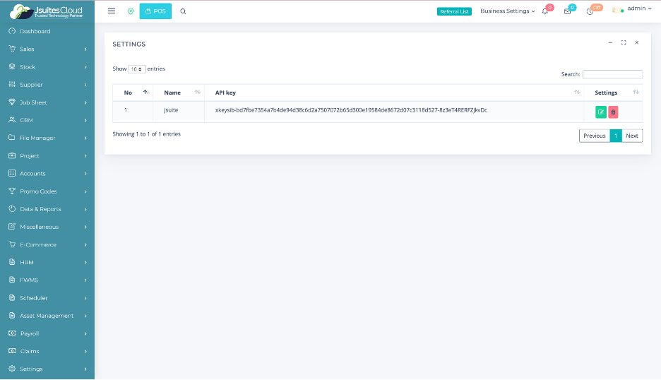 The Settings section lists API Keys, providing the necessary configurations for seamless integration with external systems.