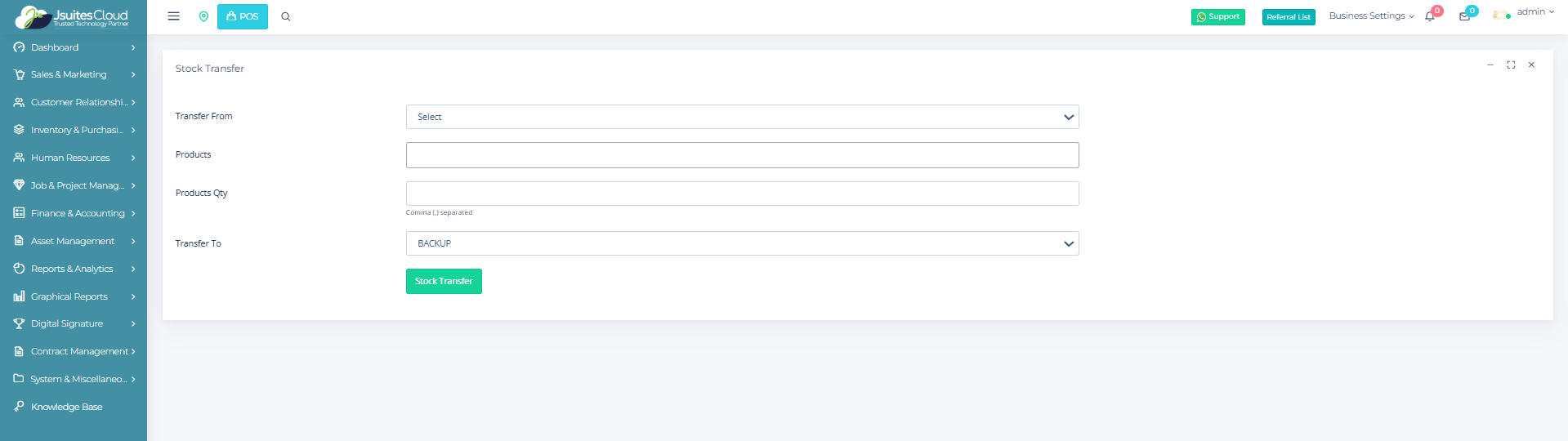 **Stock Transfer** allows businesses to move stock between different warehouse locations, ensuring balanced inventory distribution.