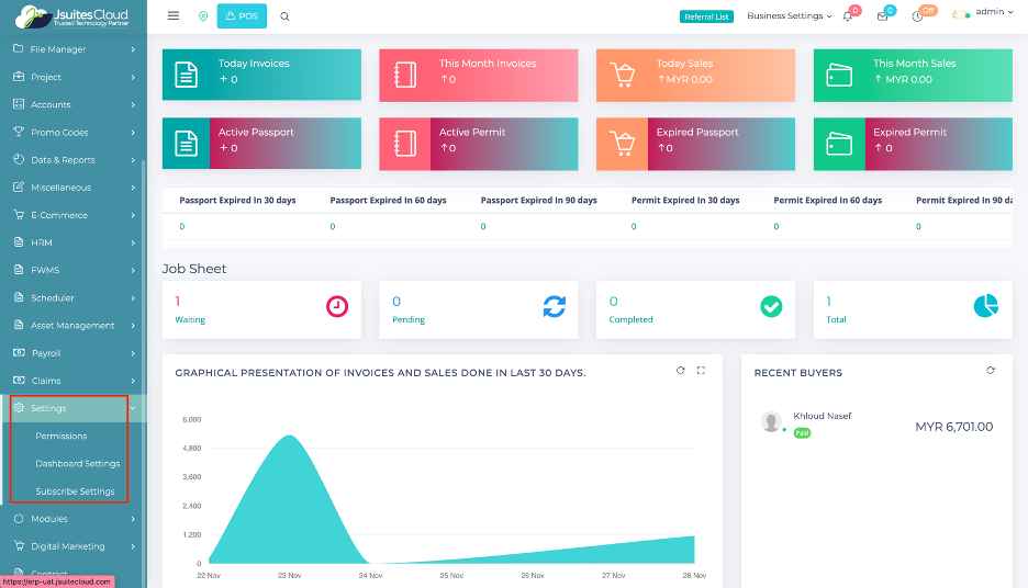 The Settings section in an Enterprise Resource Planning (ERP) system is a crucial area that allows users to configure and customize various aspects of the system to align with the organization's specific needs and requirements. In this manual, we will explore three key components within the Settings section: Permissions, Dashboard Settings, and Subscribe Settings.