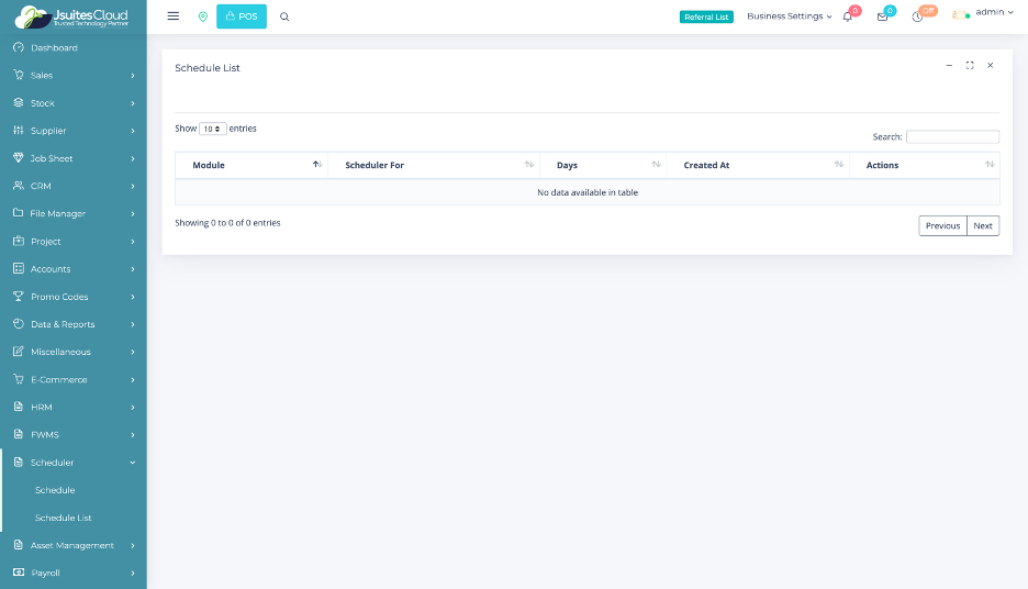 The schedule list includes columns such as "Schedule For," "Days," "Created At," and "Actions." Familiarize yourself with these columns to interpret the schedule information efficiently.
